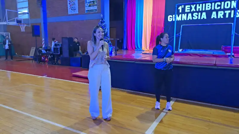 La gala de cierre del año se inició con las palabras de la Coordinadora de la Escuela de Gimnasia Artística Municipal, profesora Sabrina Vera, quien aprovechó la ocasión para agradecer a todos los que hicieron y hacen posible que la escuela funcione. Entre ellos enumeró a los padres por la confianza, a la Municipalidad de Wanda y a la Dirección de Deportes, a la comisión de padres de la escuela, a las atletas, y brindó un especial reconocimiento a Andrés, uno de los encargados del mantenimiento del Polideportivo. También agradeció la presencia de las escuelas invitadas que llegaron desde otras localidades.